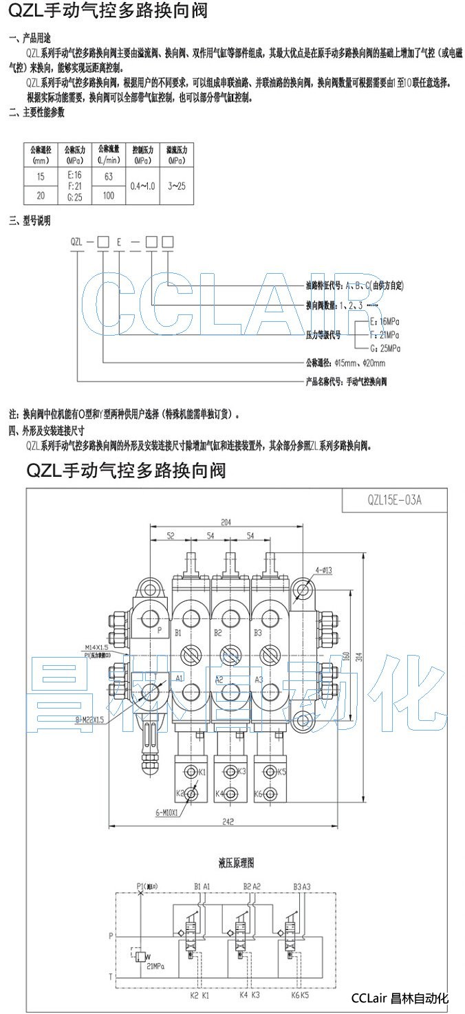 QZL-15E-1A,QZL-20E-1A,QZL-15F-1A,QZL-20F-1A,QZL-15G-1A,QZL-20G-1A,手動(dòng)氣控多路換向閥