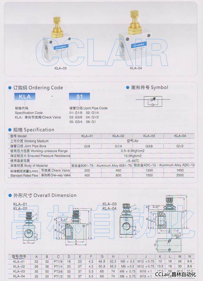 詳細(xì)信息 KLA-01,KLA-02,KLA-03,KLA-04,KLA-05,KLA-06,單向節(jié)流閥
