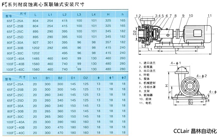詳細(xì)信息 65FP-25A,65FP-25B,65FP-25C,65FP-25D,80FP-30A,耐腐蝕離心泵(軸聯(lián)式),