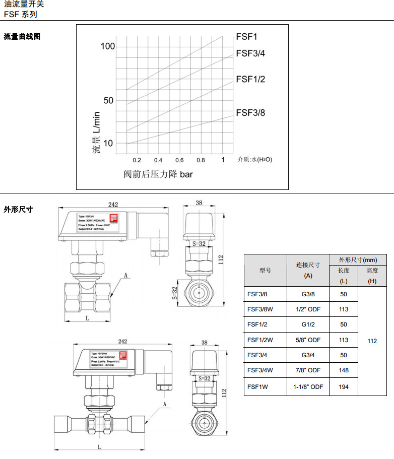 詳細(xì)信息 FSF3/8,FSF3/8W,FSF1/2,FSF1/2W,FSF3/4,FSF3/4W,FSF1W,油流量開關(guān)