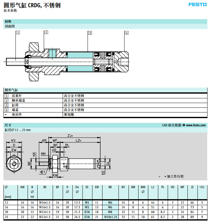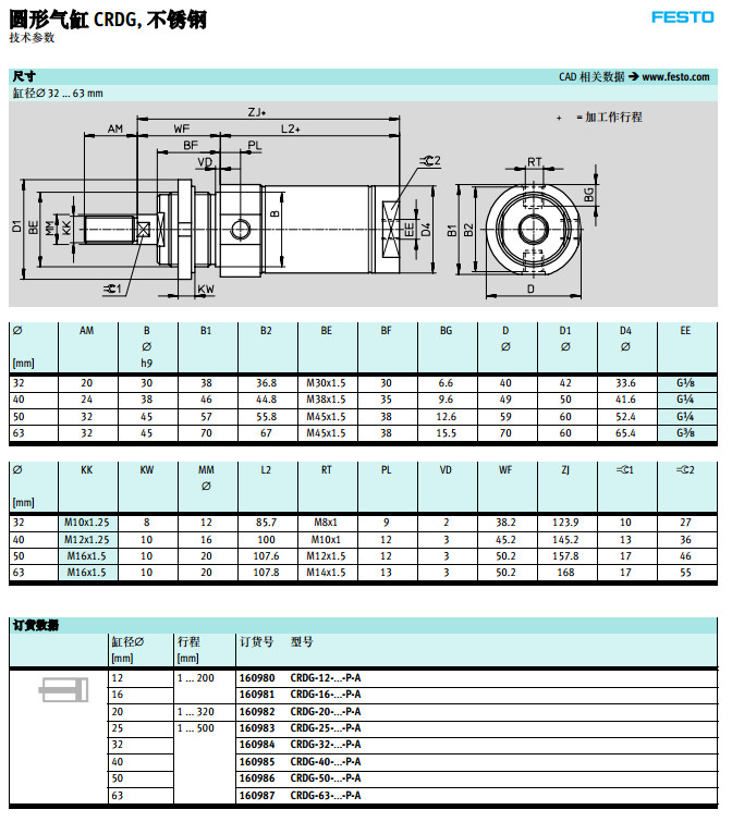 CRDG-12,CRDG-16,CRDG-20,CRDG-25,CRDG-32,CRDG-40,festo圓形氣缸