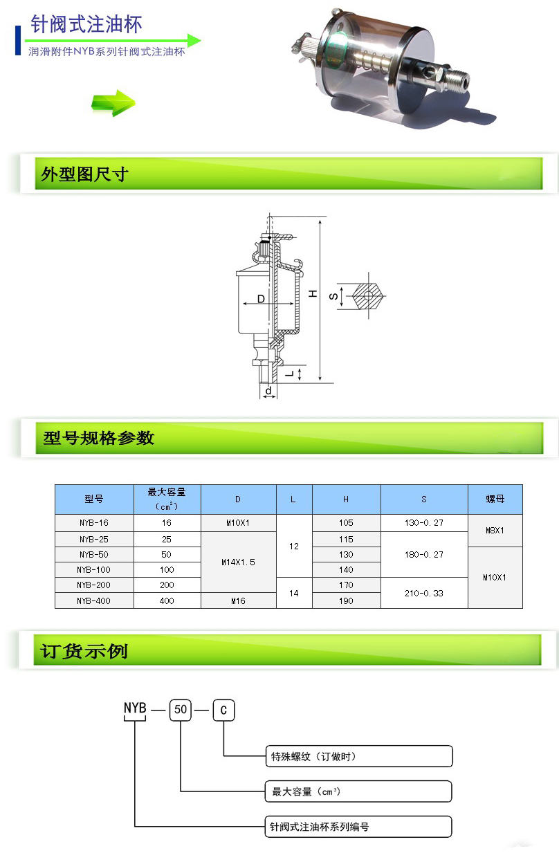 NYB-16,NYB-25,NYB-50,NYB-100,NYB-200,NYB-400,針閥式注油杯