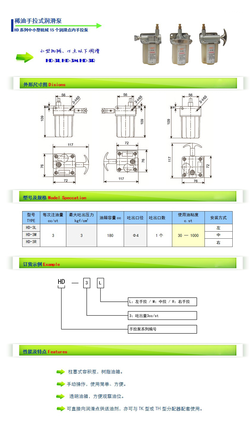 HD-3L,HD-3M,HD-3R,稀油手拉式潤滑泵