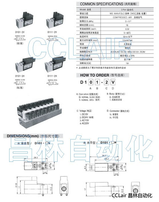詳細信息 D101-1V,D101-2V,D101-3V,D101-4V,3通直動型電磁閥