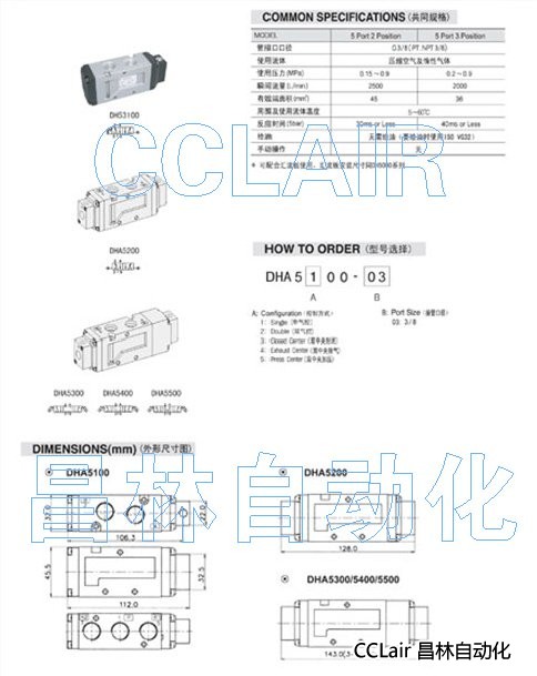 詳細(xì)信息 DHA5100-03,DHA5200-03,DHA5300-03,DHA5400-03,5通氣控閥