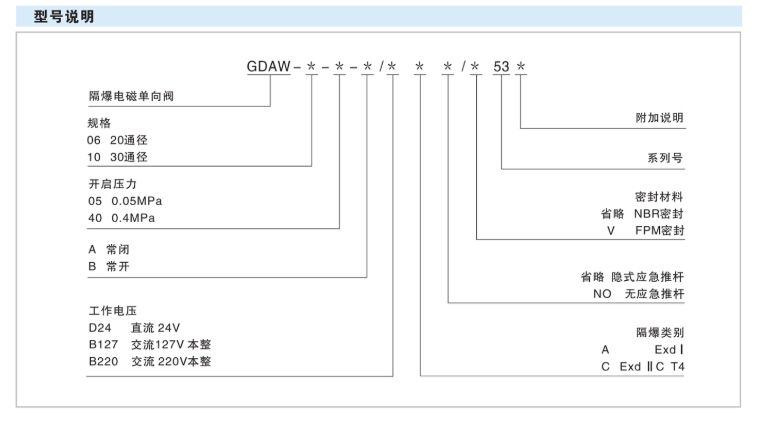 隔爆電磁單向閥: GDAW-10-05,GDAW-10-40,GDAW-10-05-A/D24A/53