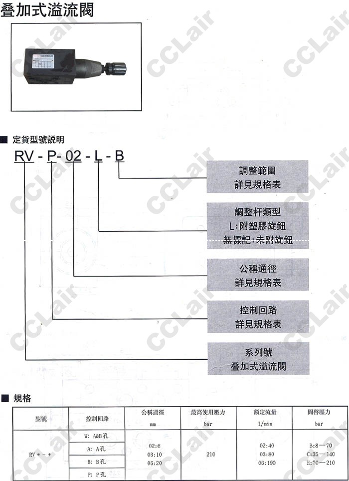 RVP-02-L-B,RVP-03,RVP-06,RVW-02-L-C,RVA-02,RVA-03-B,RVA-06,RVB-06-L-H,RVB-02,RVB-03,溢流閥