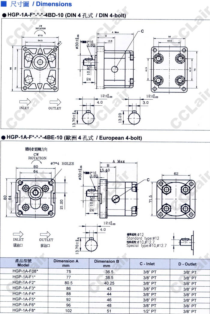HGP-1A-F1R,HGP-1A-L2R,HGP-1A-F3L,HGP-1A-F4L,HGP-1A-F5R,HGP-1A-F8R-X-2B-10,HGP-1A-L6R,齒輪泵