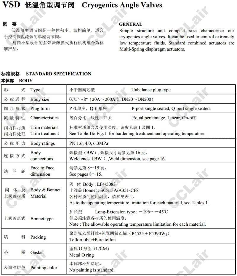 詳細(xì)信息 VSD-5200LA,低溫角型調(diào)節(jié)閥