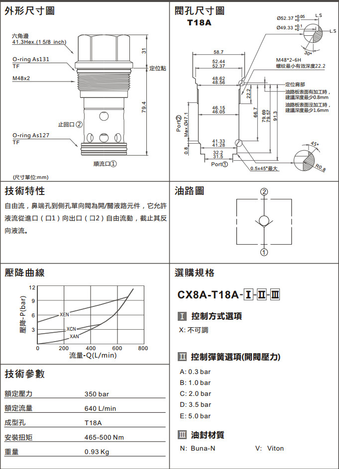 CX8A-T18A-XAN,CX8A-T18A-XEN,CX8A-T18A-XBV,CX8A-T18A-XCV,CX8A-T18A-XBN,CX8A-T18A-XCN,CX8A-T18A-XDN,CX8A-T18A-XAV, CX8A-T18A-XDV,CX8A-T18A-XEV,單向閥(口1通口2自由流)