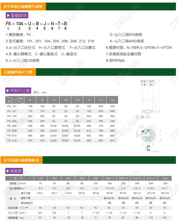 FK-101,FK-201,FK-104,FK-204,FK-206,FK-208,FK-212,FK-104-U-B-J-N-T-B,化學(xué)藥液過濾桶