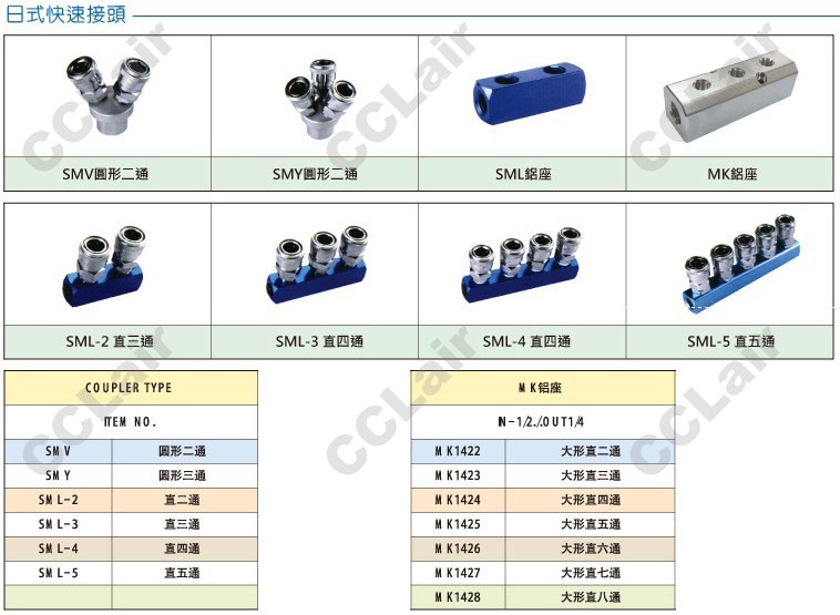 SMV,SMY,SML-2,SML-3,SML-4,SML-5,MK1422,MK1423,MK1424,MK1425,MK1426,MK1427,MK1428,國鷹KUOIN日式快速接頭