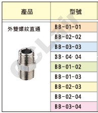 BB-01-01,BB-02-02,BB-03-03,BB-04-04,BB-01-02,BB-02-03,BB-03-04,BB-02-04,國鷹KUOIN外變螺紋直通接頭