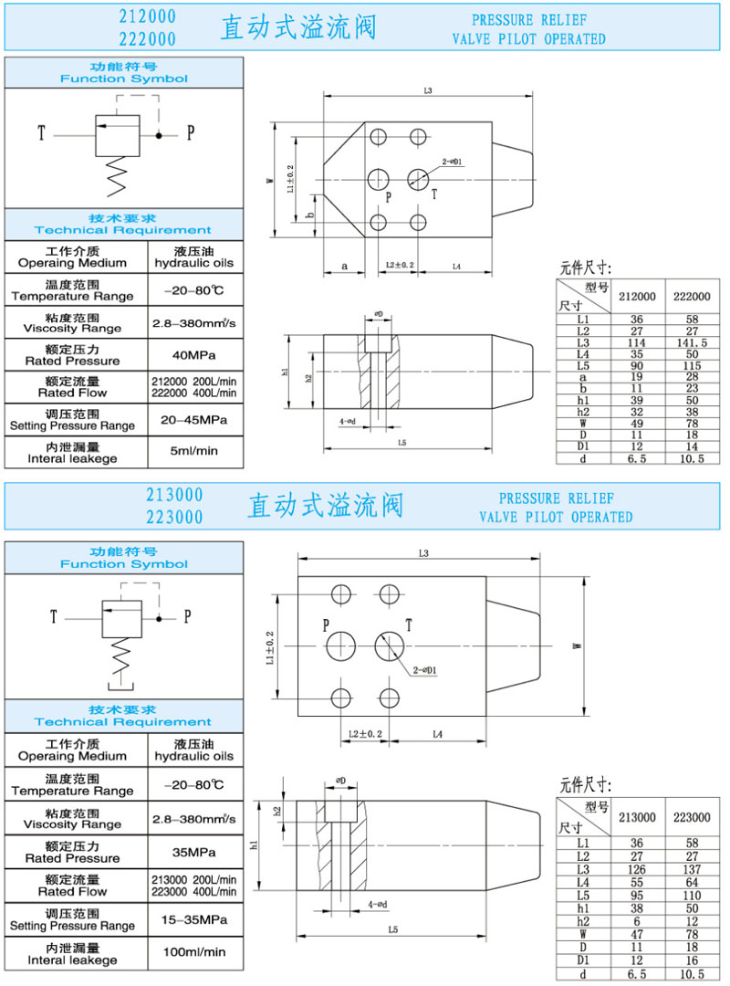 212000,222000,213000,223000,直動式溢流閥