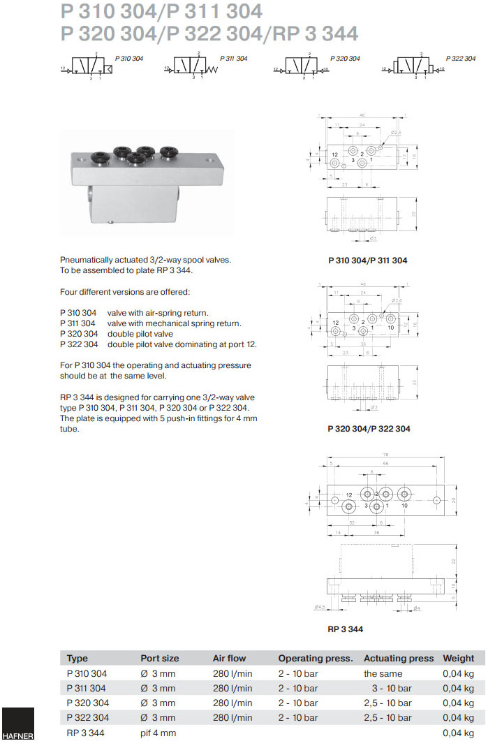 P310304,P311304,P320304,P322304,RP3344,Hafner滑閥