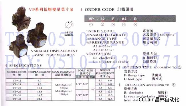 VP-12-F-A1,VP-12-F-A2,VP-15-F-A1,VP-15-F-A2,低壓變量葉片泵