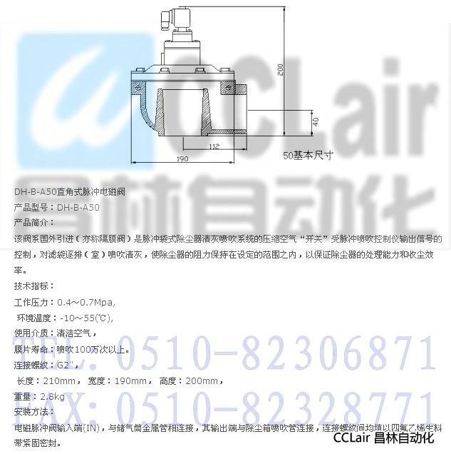 詳細(xì)信息 DH-B-A50,直角式脈沖電磁閥