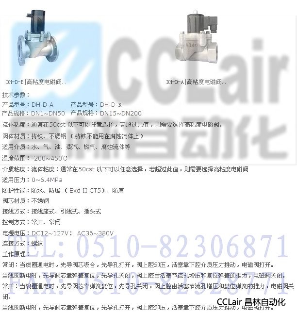 詳細信息 DH-D-B15,DH-D-B20,DH-D-B25,DH-D-B32,DH-D-B40,DH-D-B50,高粘度電磁閥