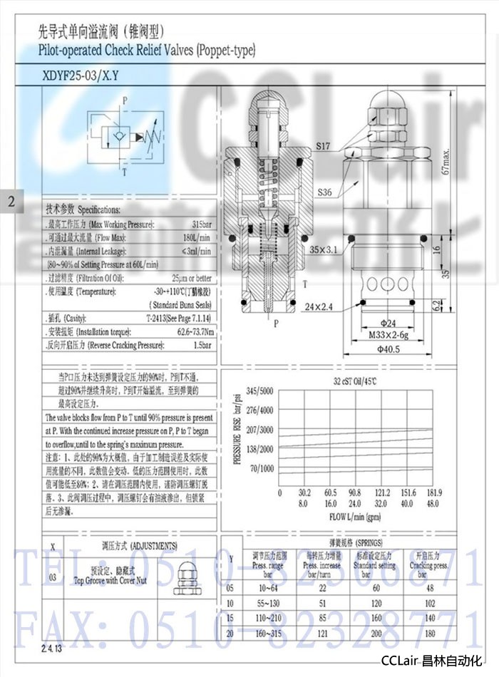 XDYF25-03,先導(dǎo)式單向溢流閥