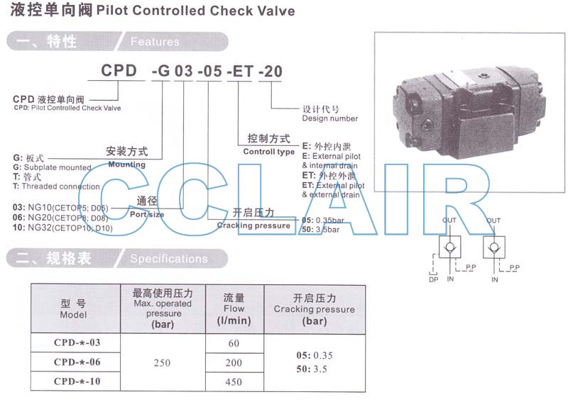 CPD-G03,CPD-G06,CPD-G10,CPD-T03,CPD-T06,CPD-T10,CPD-G03-05-E-20,CPD-G03-50-E-20,液控單向閥