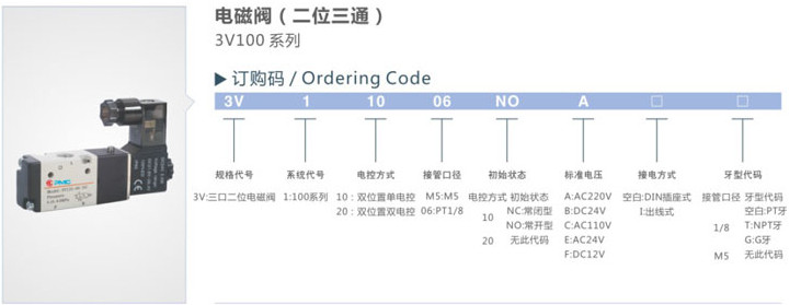 3V110-M5-NC-A,3V110-M5-NC-B,3V110-06-NO-C,3V120-06-NO-E,3V120-06-NO-F,二位三通電磁閥