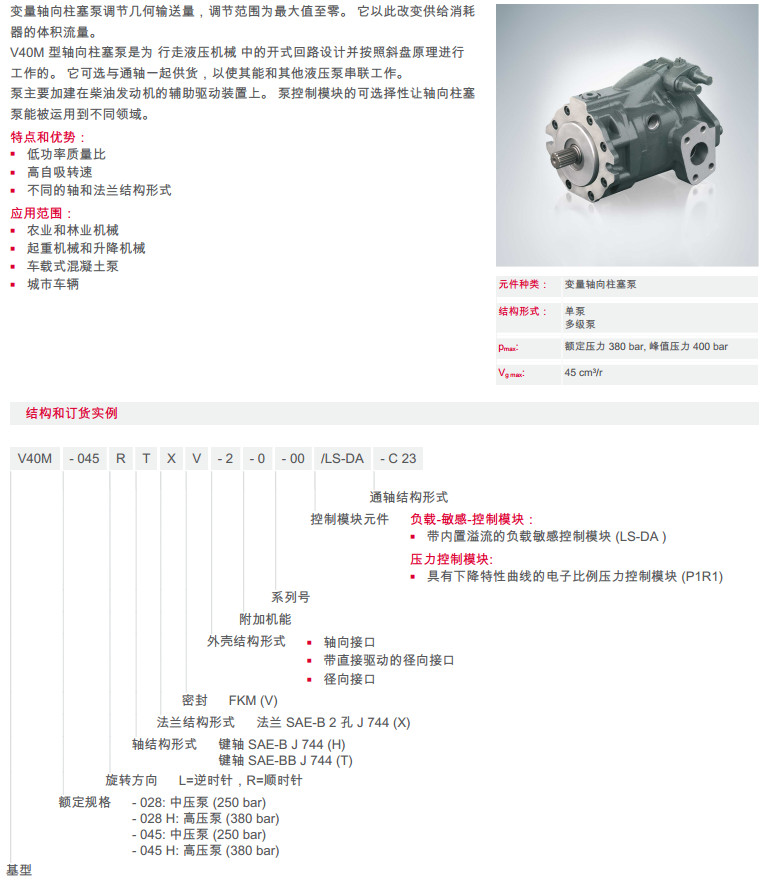 V40M-028LTXV-2V40M-028 HLTXV-2V40M-045LTXV-2V40M-045HLTXV-2,變量軸向柱塞泵