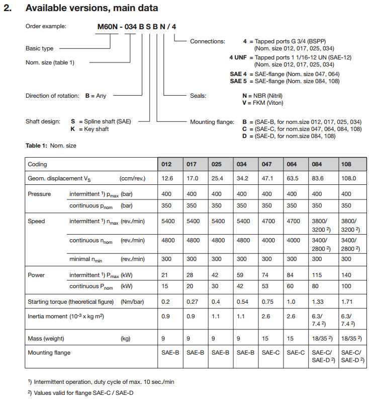 M60N-012BSDV/4,M60N-017BSDV/4,M60N-025BSDV/4,M60N-034BSDV/4,M60N-047BSDV/4,M60N-064BSDV/4,M60N-084BSDV/4,M60N-108BSDV/4,
