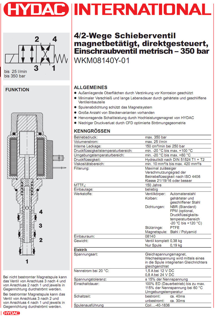 WKM08140Y-01-C-N-24DG,WKM08140Y-01-C-N-230AG,HYDAC電磁4/2方向滑閥