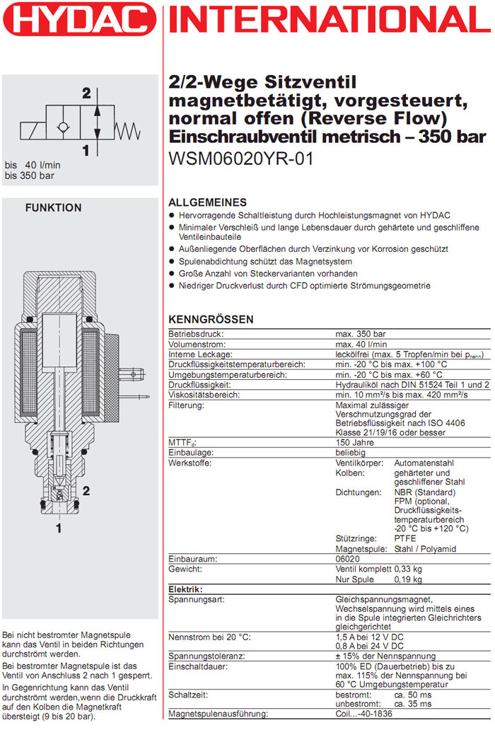 首頁 > 產(chǎn)品&解決方案 > WSM06020YR-01-C-N-24DG,WSM06020YR-01-C-N-230AG,HYDAC電磁2/2方向座閥