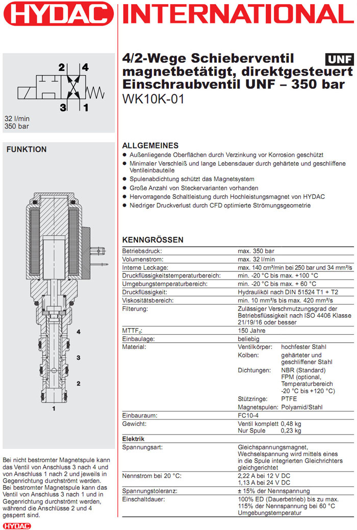 首頁 > 產(chǎn)品&解決方案 > WK10K-01-C-N-24DG,WK10K-01-C-N-230AG,HYDAC電磁4/2方向滑閥