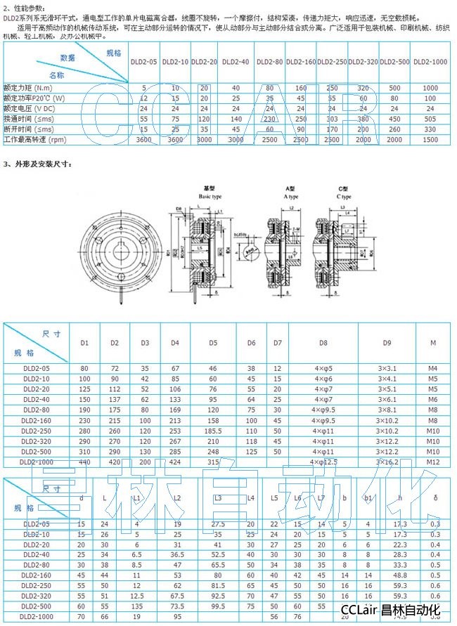 » DLD2-05,DLD2-10,DLD2-20,DLD2-40,DLD2-80,單片電磁離合器