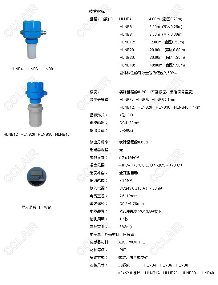 HLNB4,HLNB6,HLNB8,HLNB12,HLNB20,HLNB30,HLNB40,HLNB一體式超聲波物位計(jì)