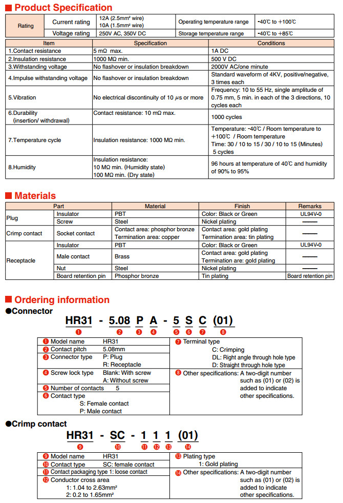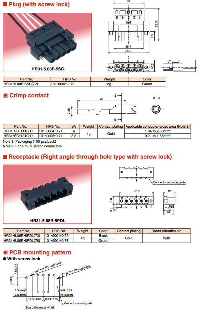 HR31-5.08P-5SC,HR31-SC-111,HR31-SC-121,HR31-5.08R-5PDL,hirose連接器