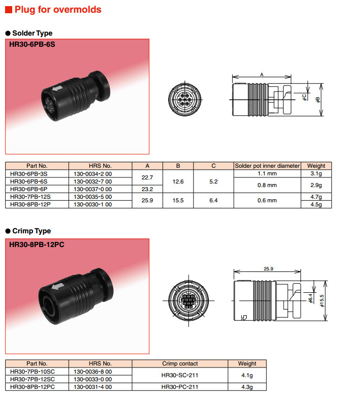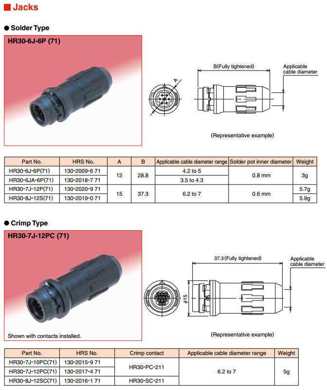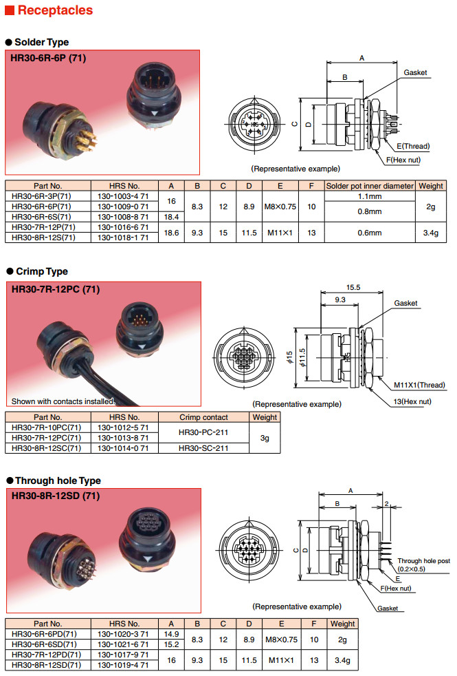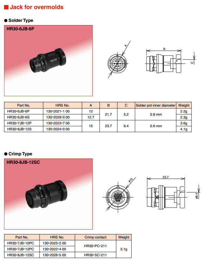 HR30-7J-10PC,HR30-7J-12PC,HR30-8J-12SC,HR30-PC-211, HR30-6JB-6P,HR30-6JB-6S,