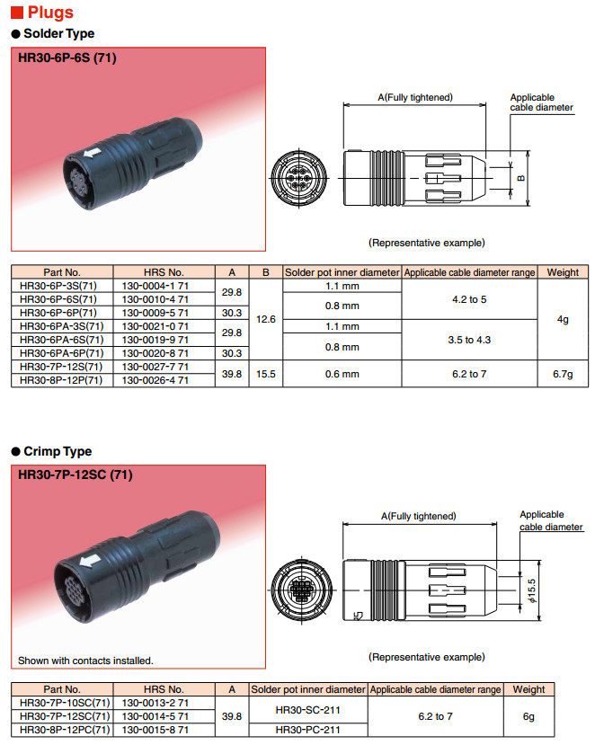 HR30-7P-10SC,HR30-7P-12SC,HR30-8P-12PC,HR30-6PB-3S,HR30-6PB-6S,HR30-6PB-6P,
