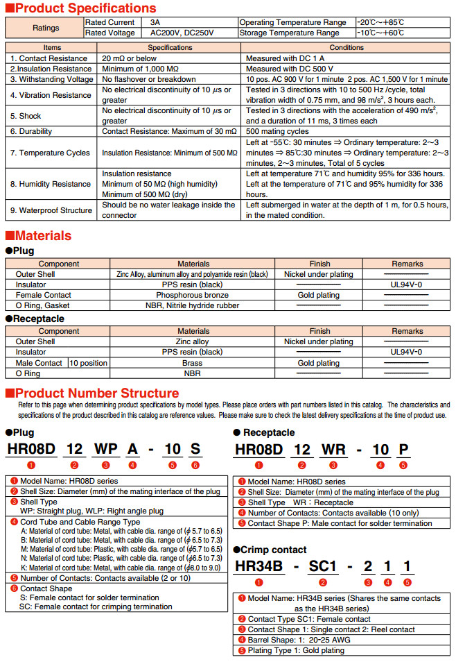 HR08D-12WPN-10S,HR08D-12WPM-2S,HR08D-12WPN-10SC,HR08D-12WPA-10S,HR08D-12WPB-10S,