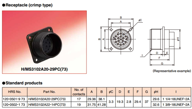 H/MS3102A20-29PC,H/MS3102A22-14PC,hirose連接器
