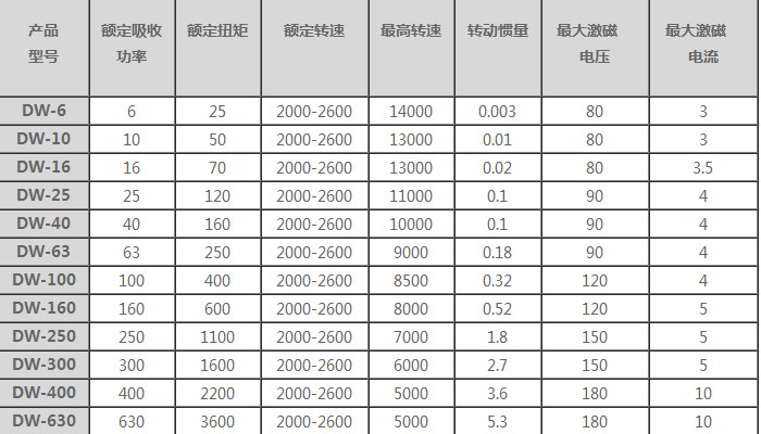 DW-6,DW-10,DW-16,DW-25,DW-40,DW-63,DW-100,DW-160,DW-250,DW-300,DW-400,DW-630電渦流測功機