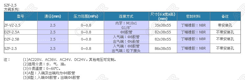 SZF-VZ-2.5,ZF-VZ-2.5,DZF-VZ-2.5A,DZF-VZ-2.5B,焊機專用電磁閥