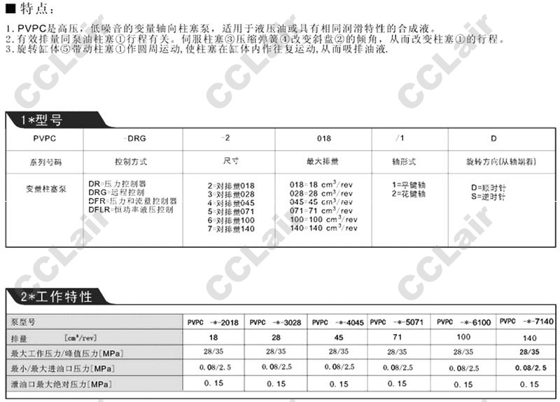 PVPC-DR-2018,PVPC-DRG-3028,PVPC-DFR-4045,PVPC-DFLR-5071,PVPC-DR-6100,PVPC-DRG-7140,軸向柱塞泵