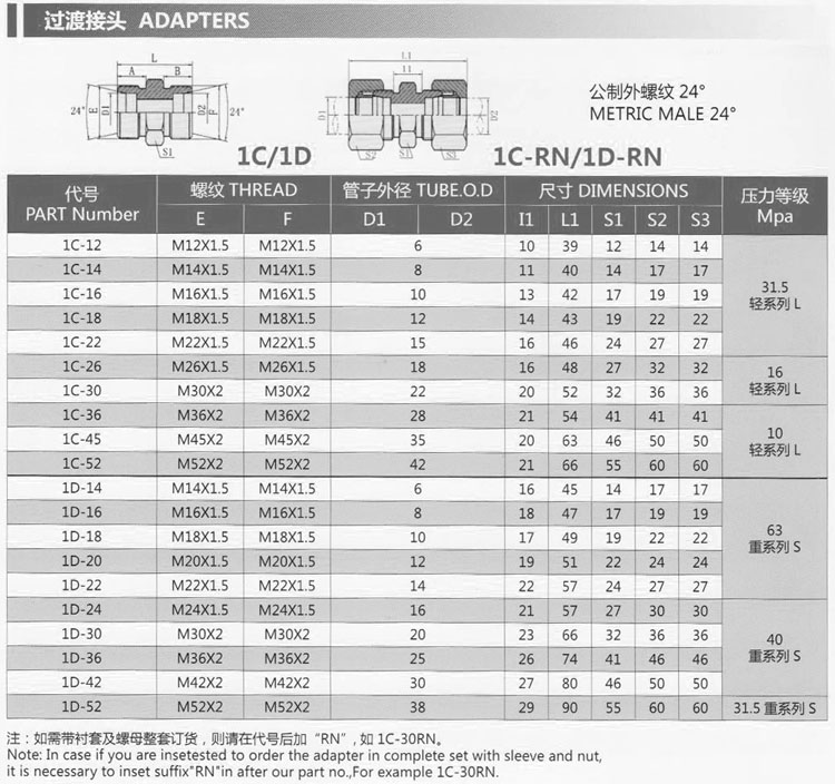 1C-12,1C-14,1C-16,1C-18,1C-22,1D-24,1D-30,1D-36,1D-42,1D-52,過(guò)渡接頭
