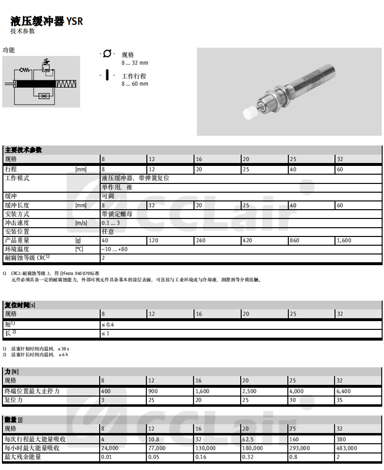 詳細(xì)信息 YSRW5-8,YSRW7-10,YSRW8-14,YSRW10-17,YSRW12-20,YSRW16-26, YSRW20-34,油壓緩沖器YSRW