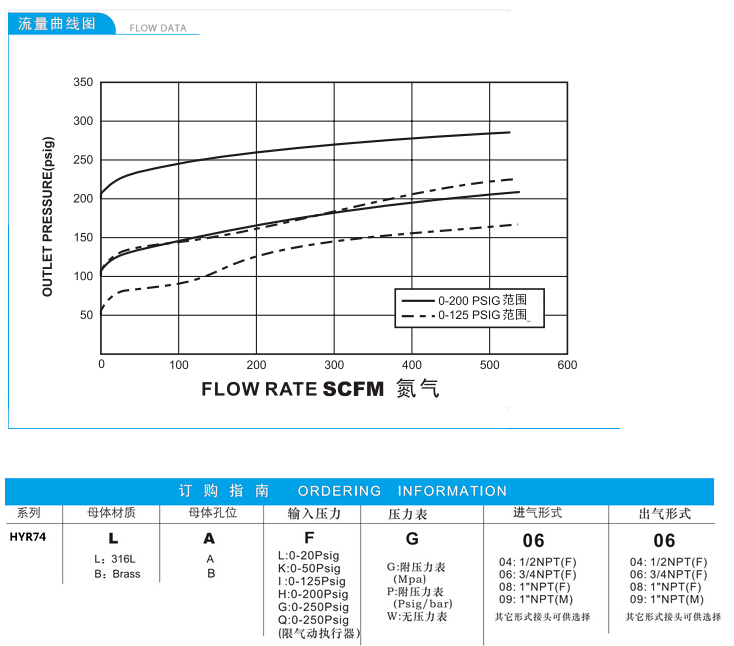 調(diào)節(jié)壓力:0-20,0-50,0-125,0-200,0-250Psig