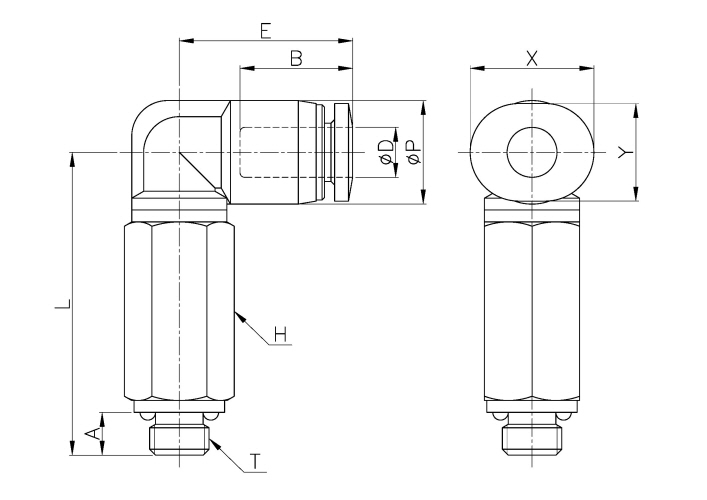| Model | ¢D | ¢P | T | L | E | A | B | H(Hex) | X | Y | ORIFICE | WEIGHT(g) | BOX(EA) |