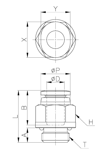 | Model | ∅D | ∅P | T | L | A | B | H(Hex) | X | Y | ORIFICE | WEIGHT(g) | EA(BOX) |