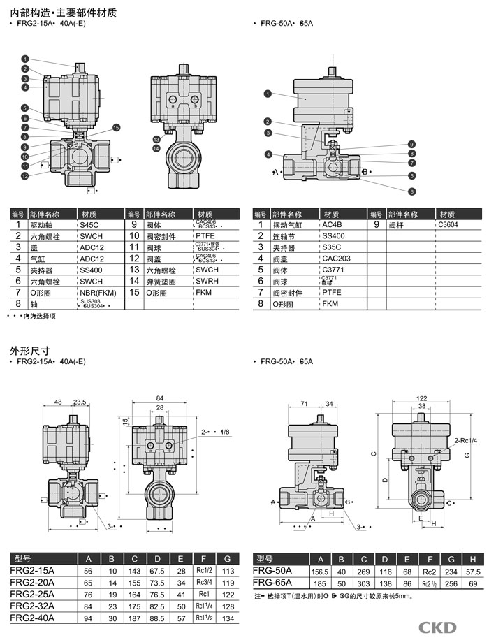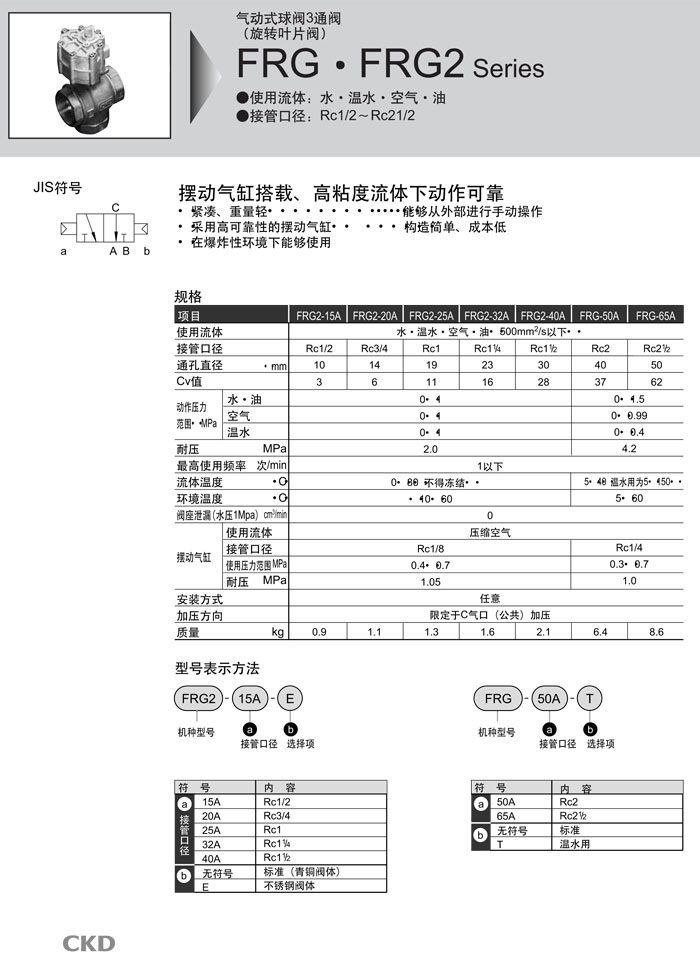 詳細(xì)信息 FRG2-15A,FRG2-20A,FRG2-25A,FRG2-32A,FRG2-40A,FRG-50A,FRG-65A,CKD氣動式球閥3通閥