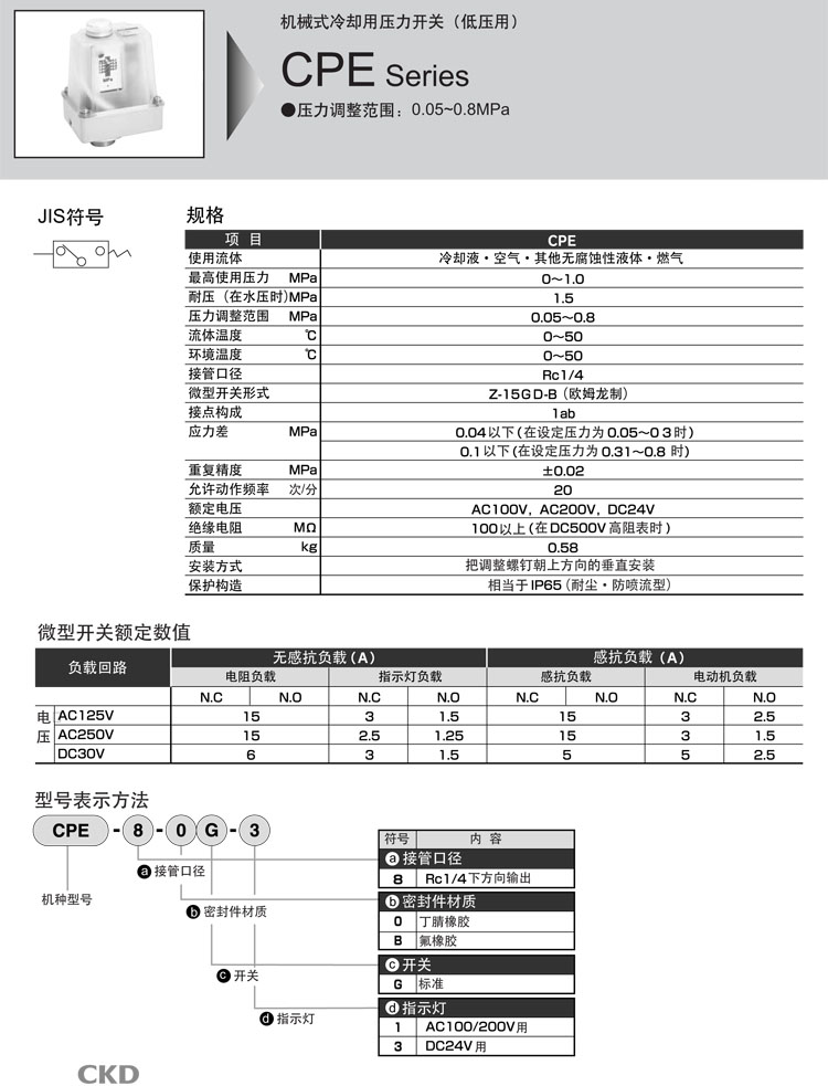 CPE-8-OG-1,CPE-8-OG-3,CPE-8-BG-1,CPE-8-BG-3,CKD壓力開關(guān)