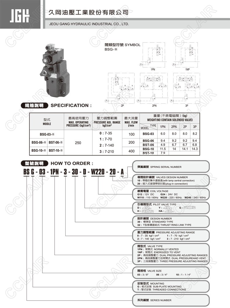 JeouGang臺灣久岡,電磁控制溢流閥BSG-03-1PN-0-30-D-G12-10-A,BSG-03-1PN-0-30-HA-G12-20-A,BSG-03-1PN-0-32-D-G24-20-A,BSG-03-1PN-1-30-Y-W220-20-A,BST-03-1PN-0-30-Y-W220-10-A,BST-03-1PN-1-32-H-G12-10-A