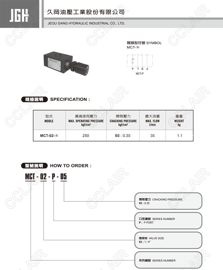 詳細(xì)信息 JeouGang臺(tái)灣久岡,疊加式止逆節(jié)流閥MCT-02-P-05