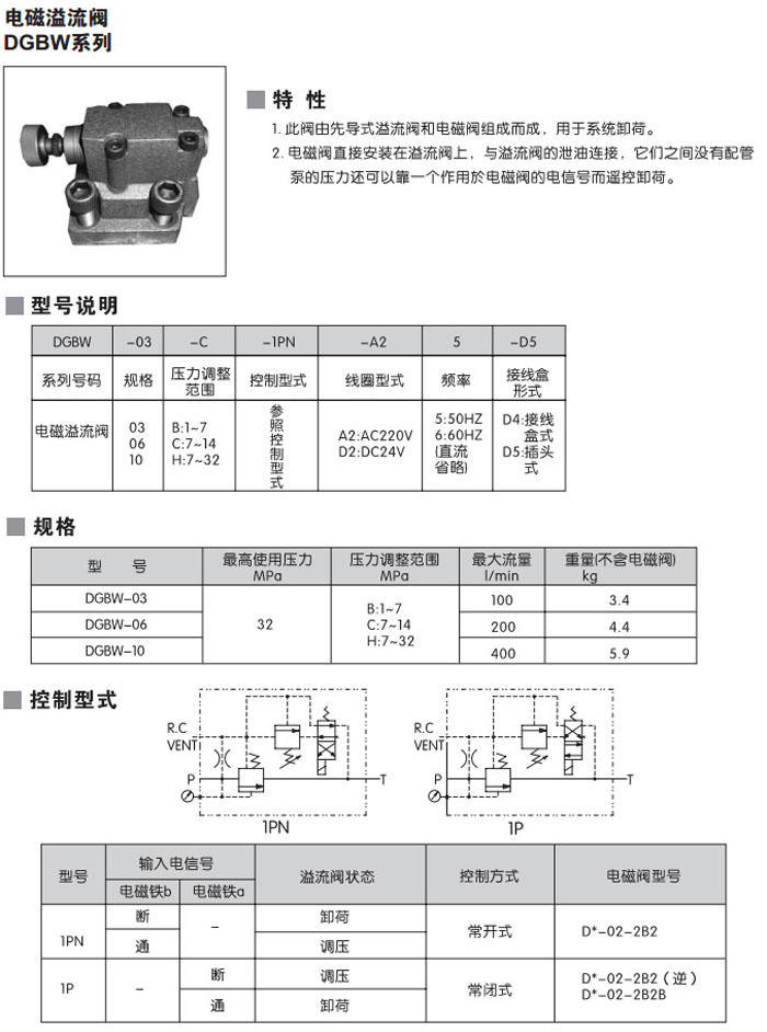 DGBW-03,DGBW-06,DGBW-10,DGBW-03-B-1PN-A2-5-D4,DGBW-10-H-1PN-D2-6-D5,電磁溢流閥